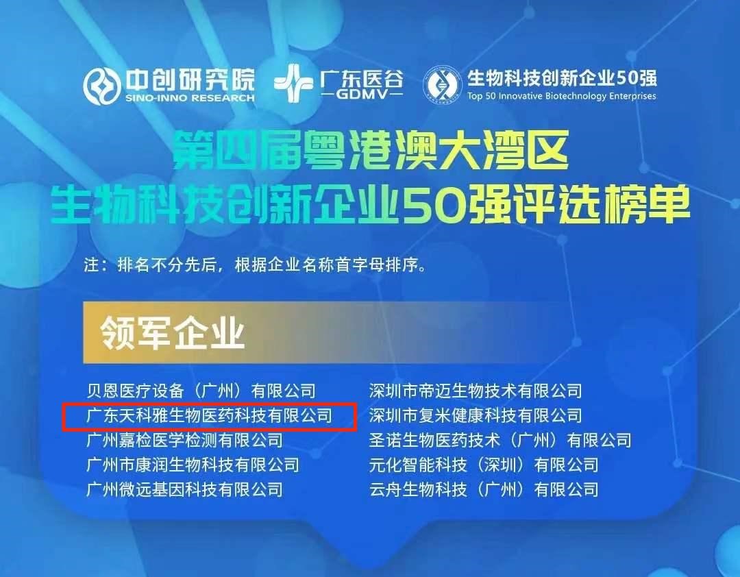 天科雅獲“第四屆生物科技創(chuàng)新企業(yè)50強(qiáng)-領(lǐng)軍企業(yè)”