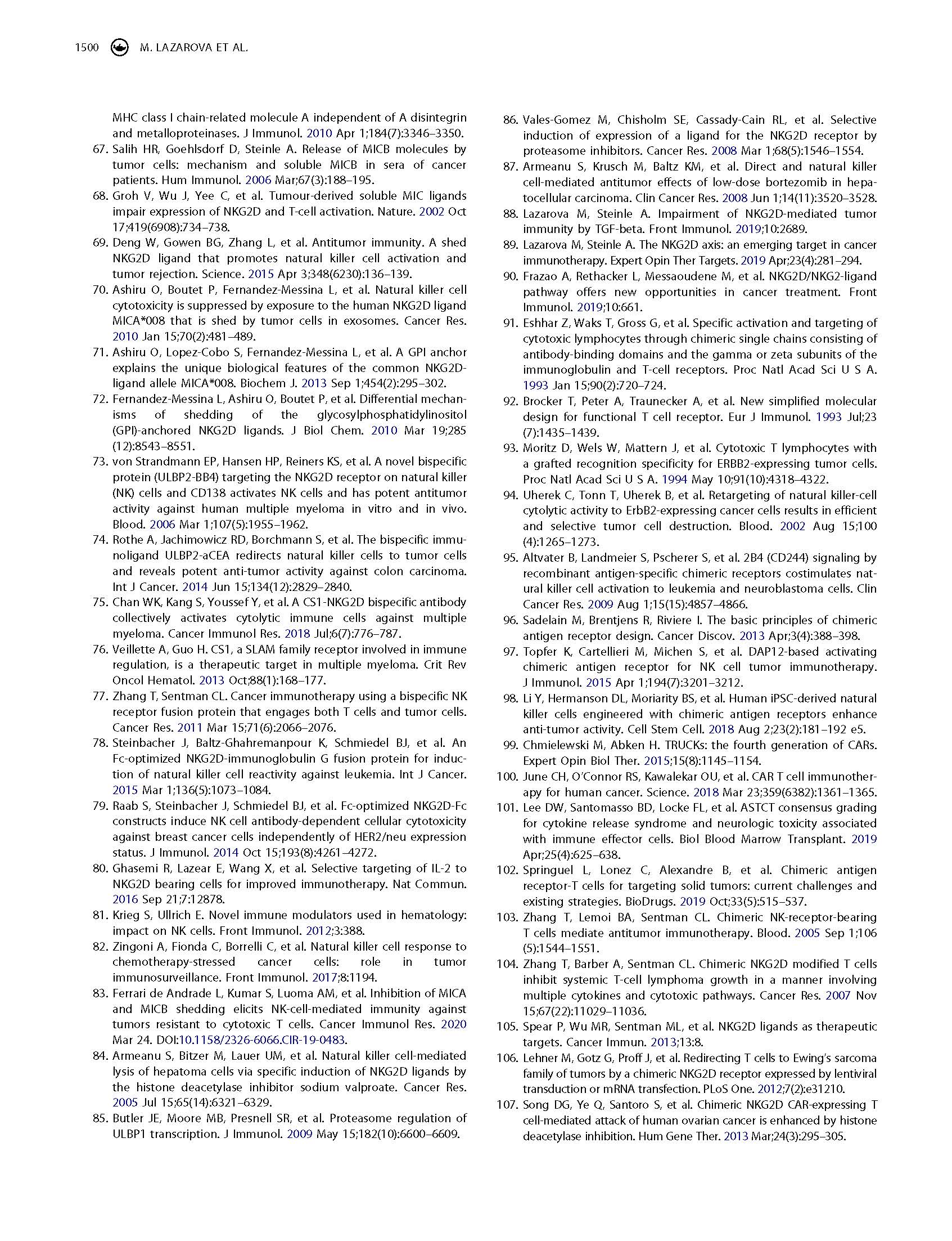 專(zhuān)家意見(jiàn) Arming cytotoxic lymphocytes for cancer immunotherapy by means of the NKG2D/NKG2D ligand system